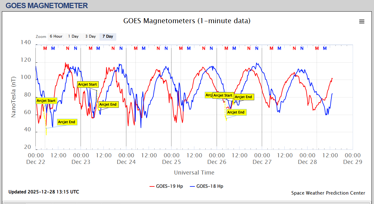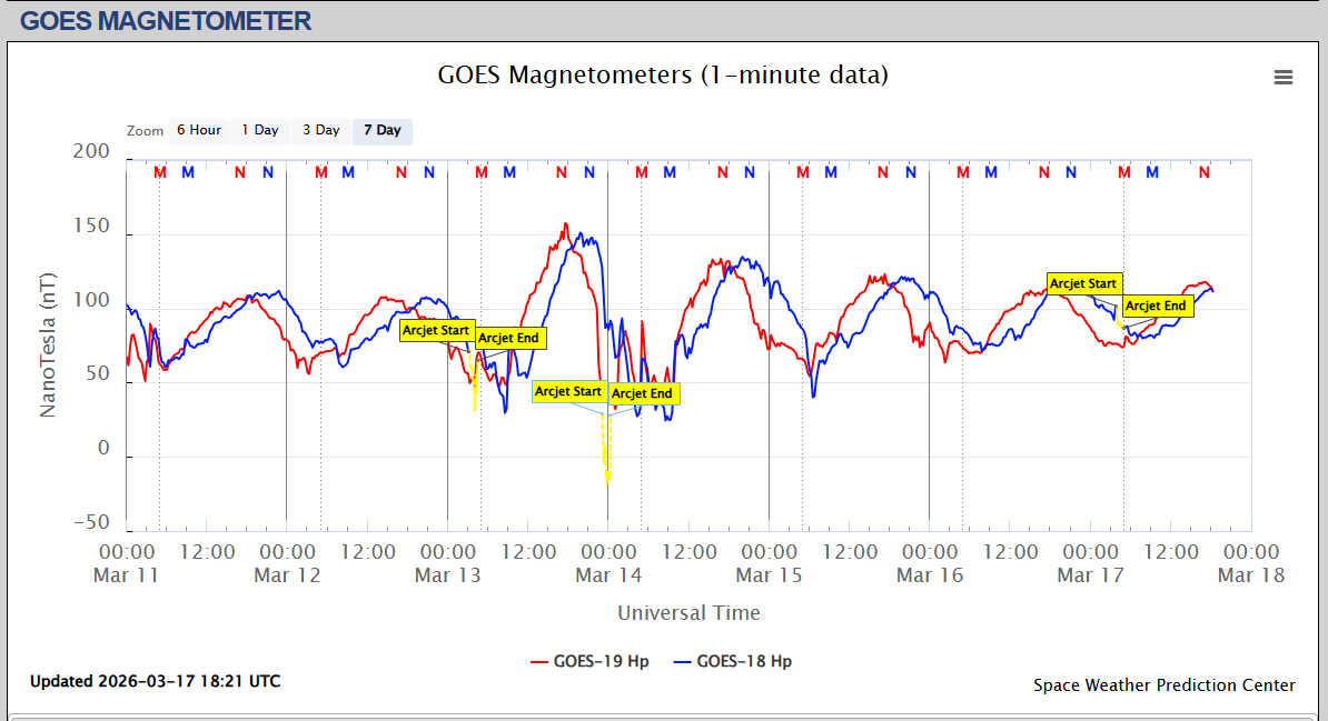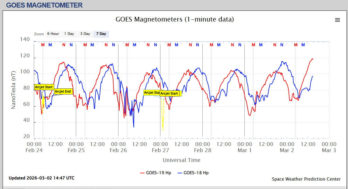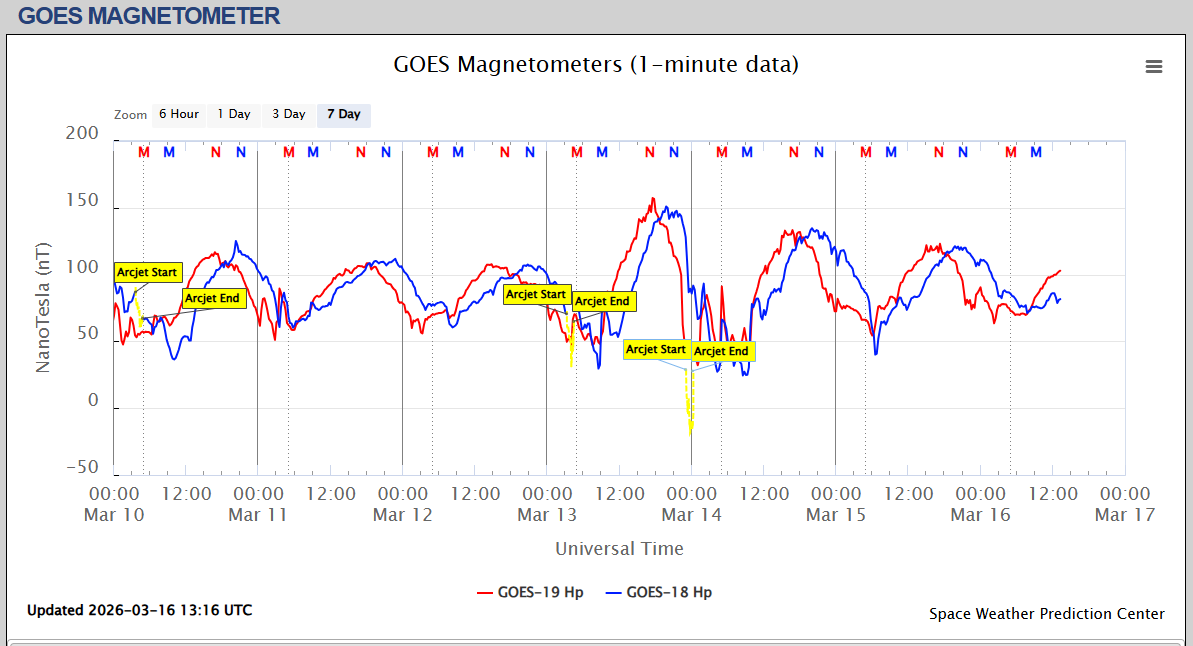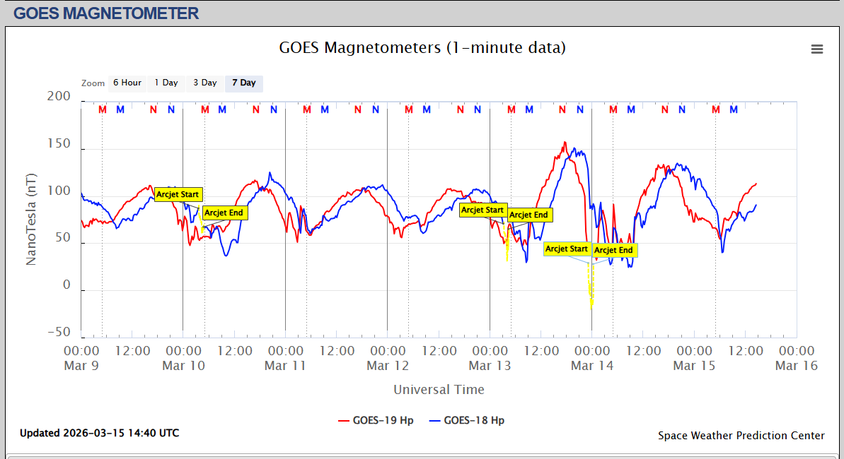Pe această pagină sunt afișate date înregistrate din website-urile care mai publică indicii de evoluţie geomagnetică (geospaţială). Ele ne dau o