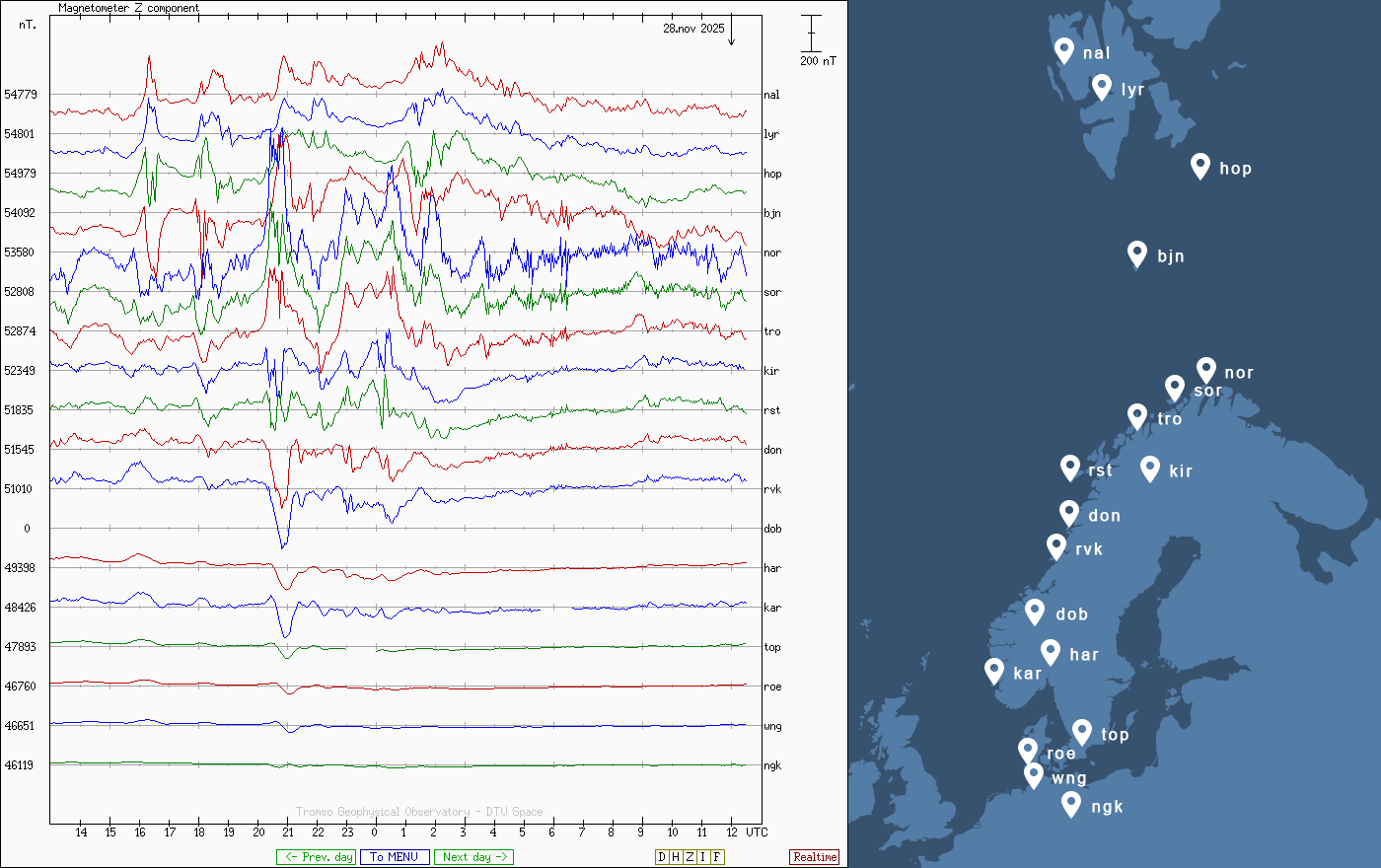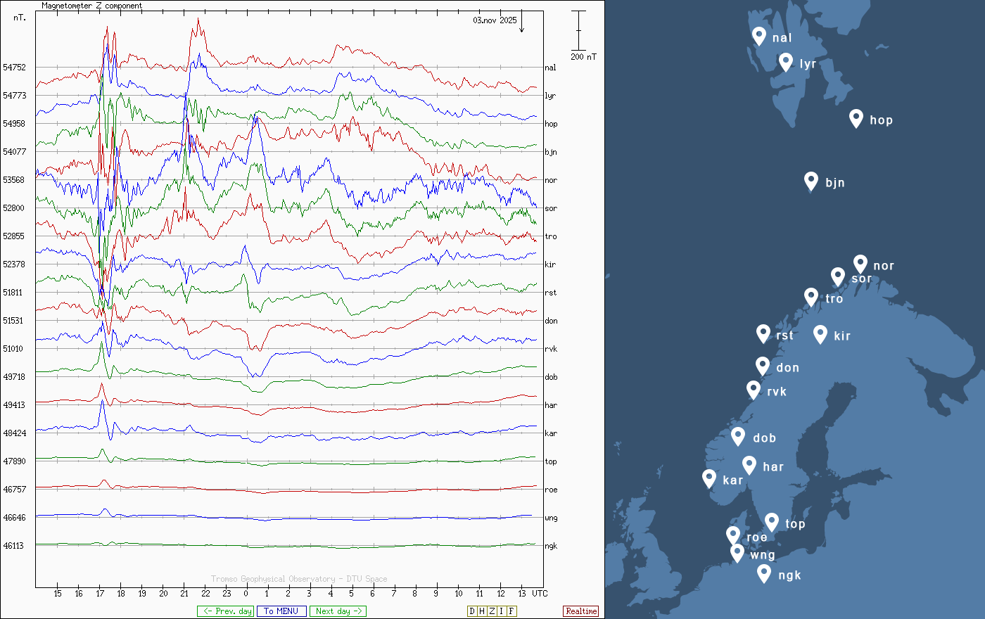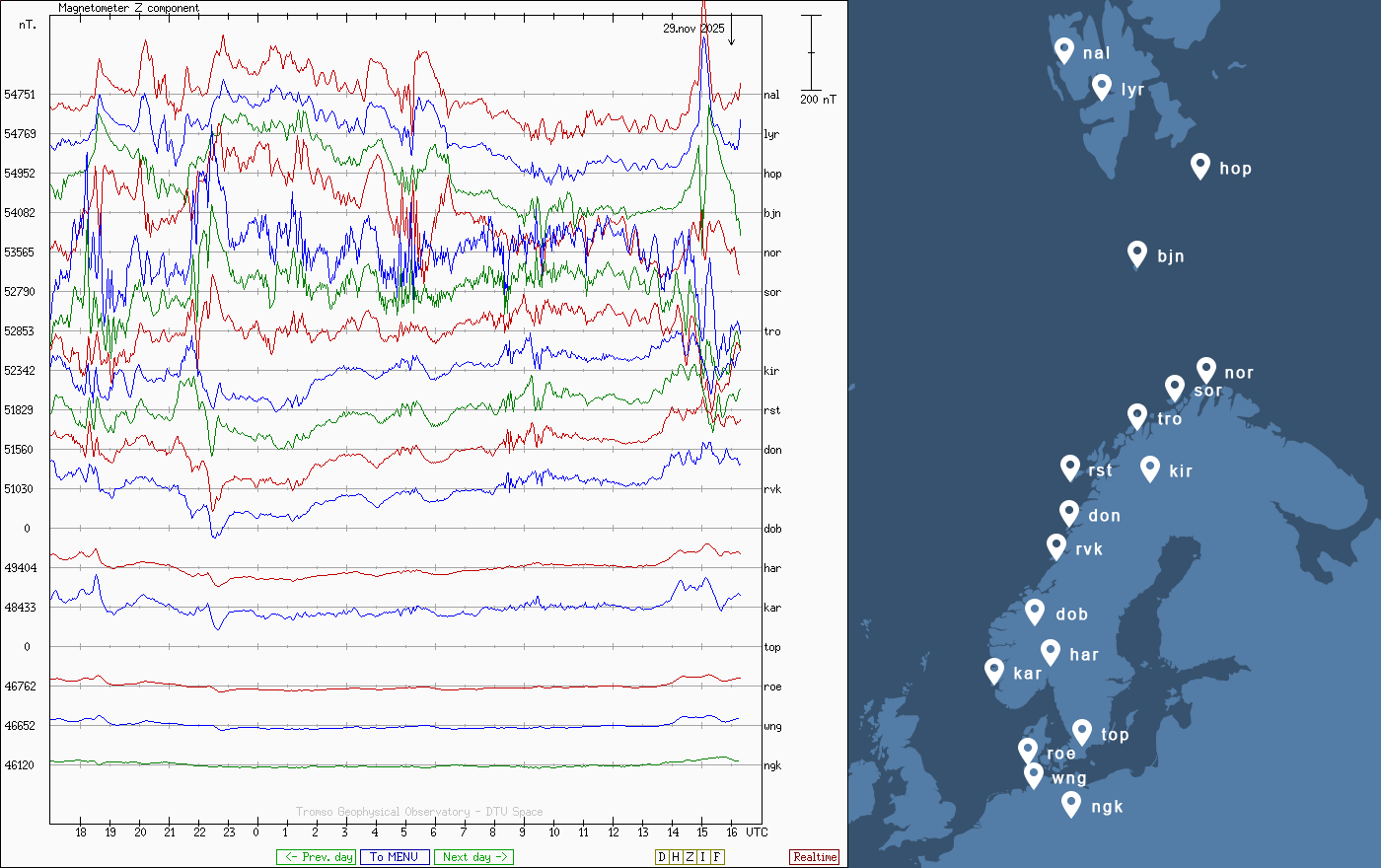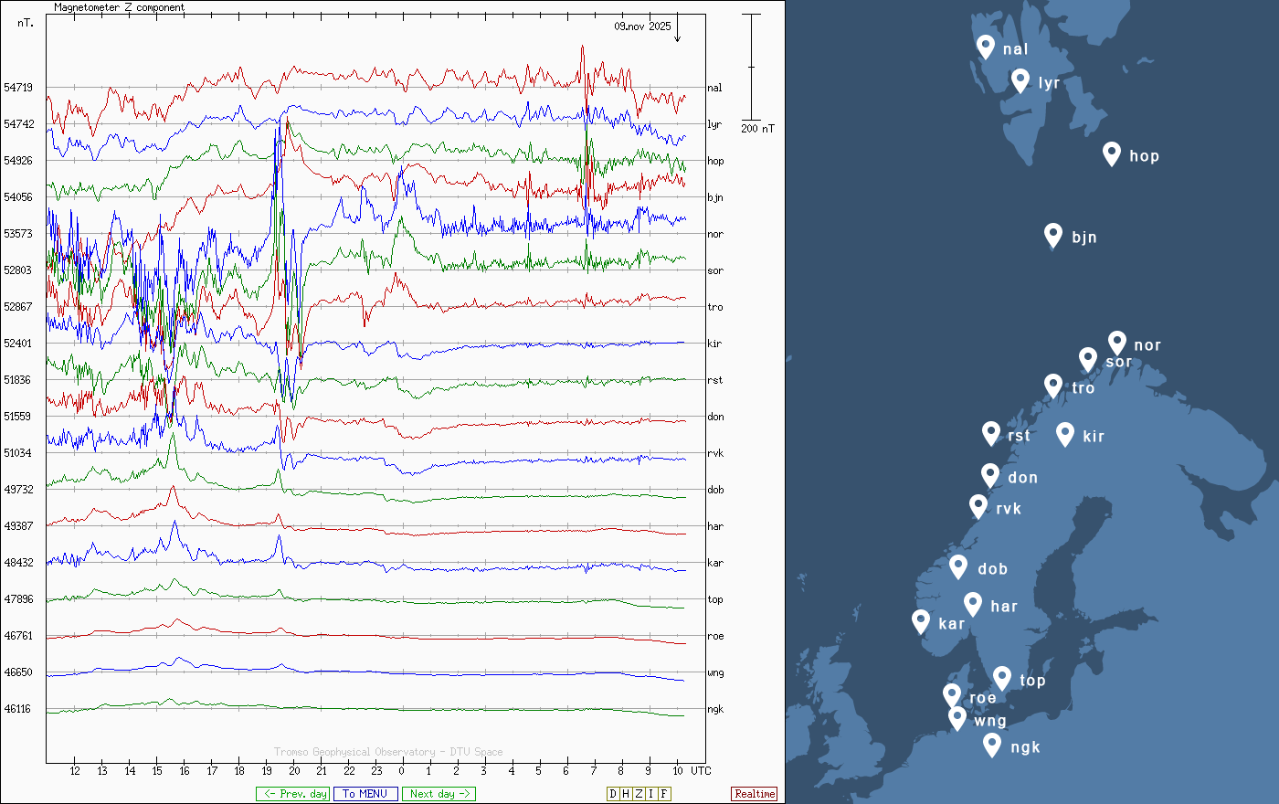 Pe această pagină sunt afișate date înregistrate din website-urile care mai publică indicii de evoluţie geomagnetică (geospaţială). Ele ne dau o