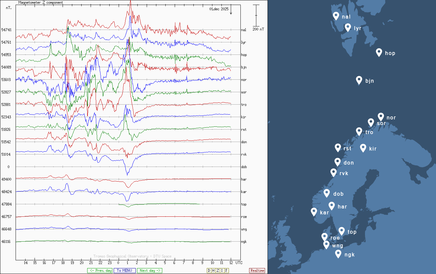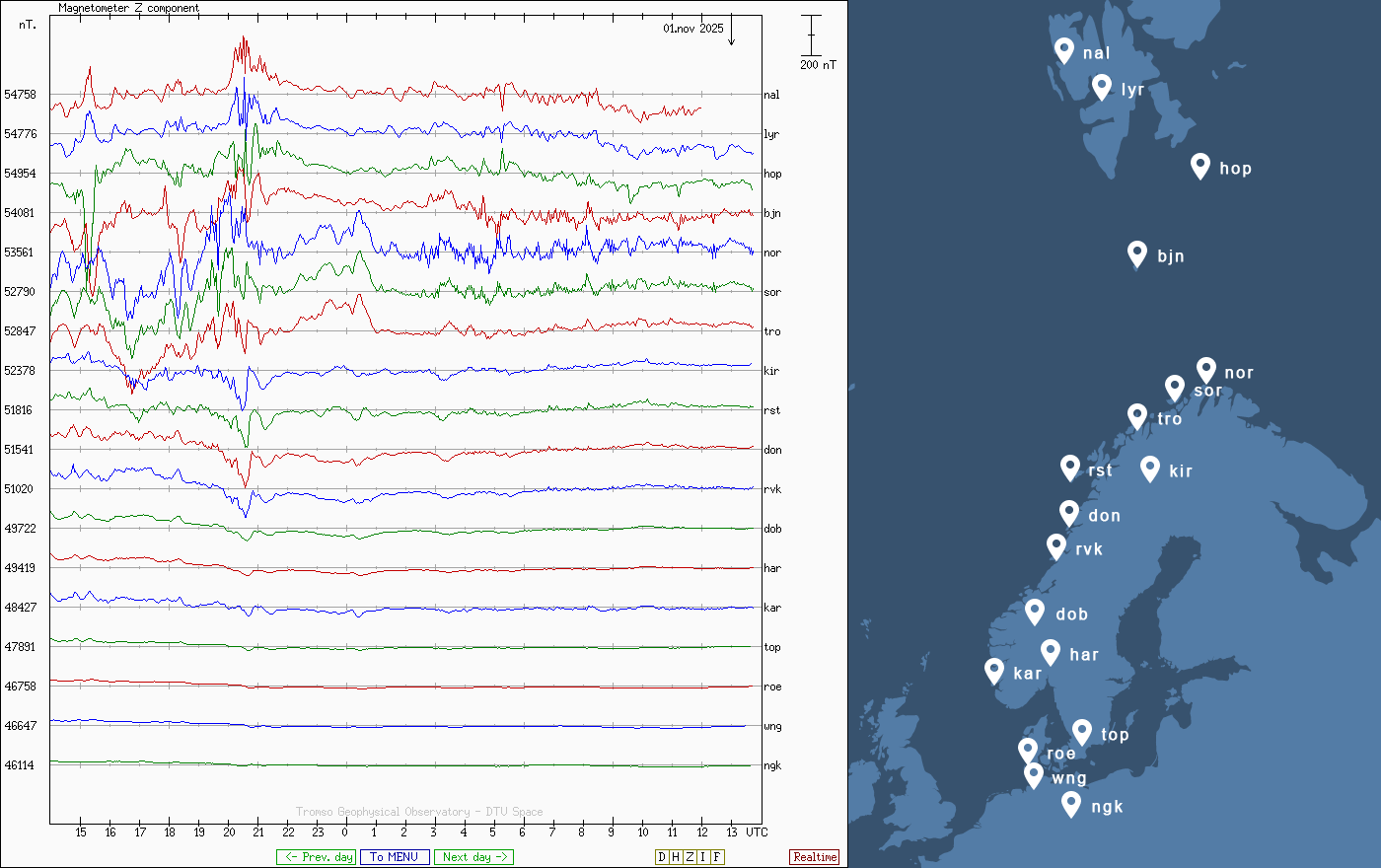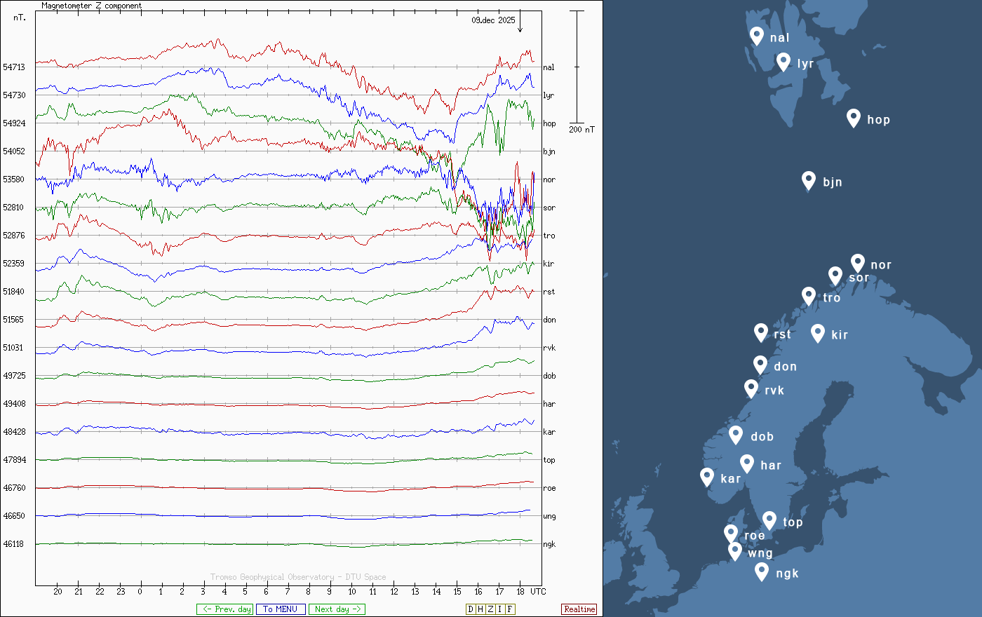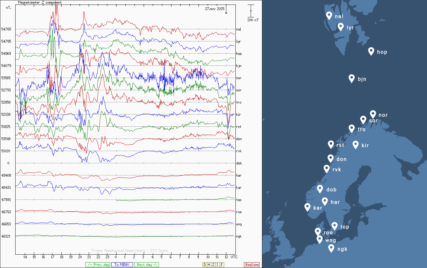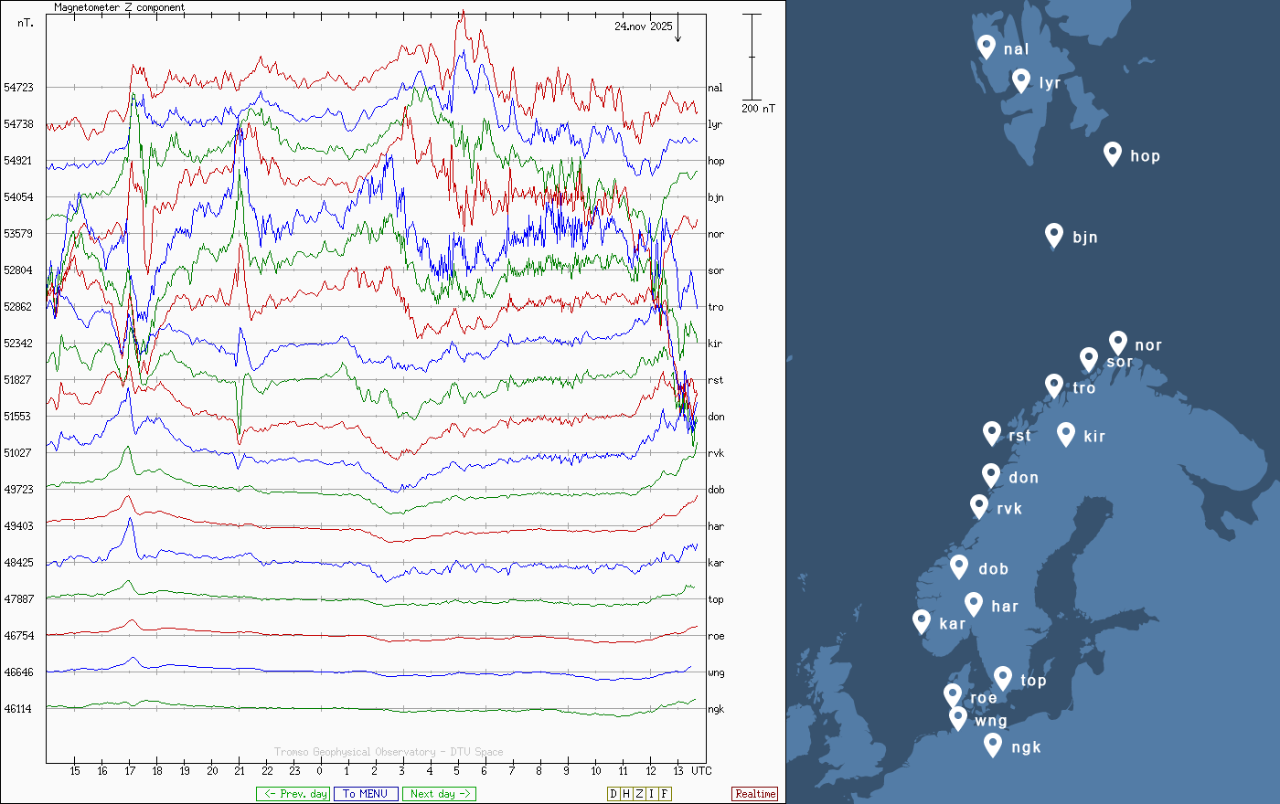 Pe această pagină sunt afișate date înregistrate din website-urile care mai publică indicii de evoluţie geomagnetică (geospaţială). Ele ne dau o