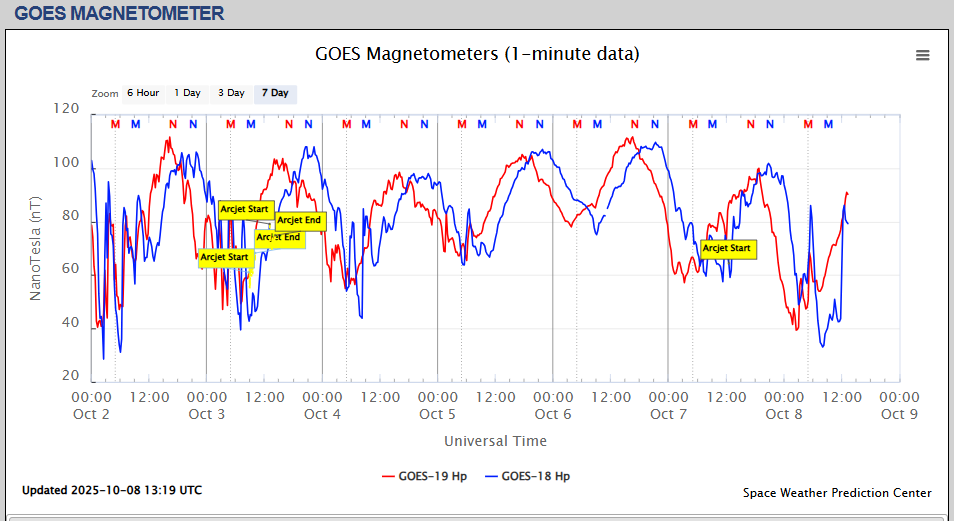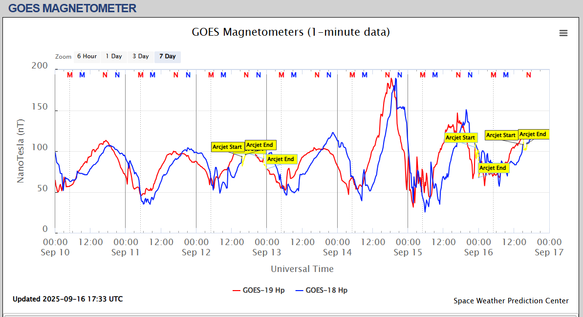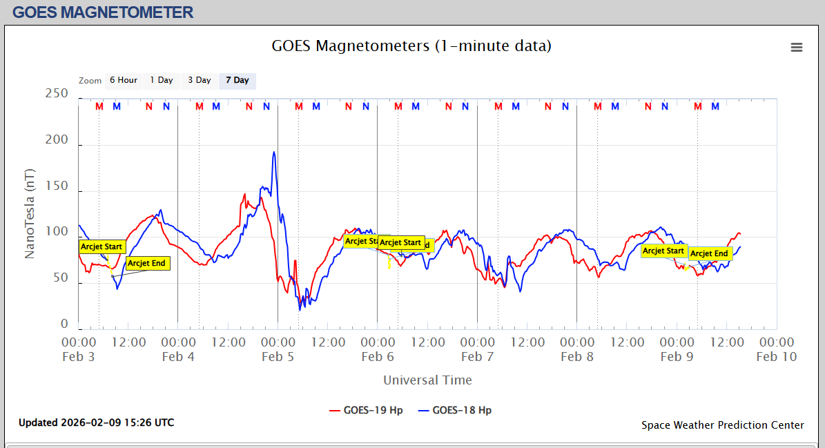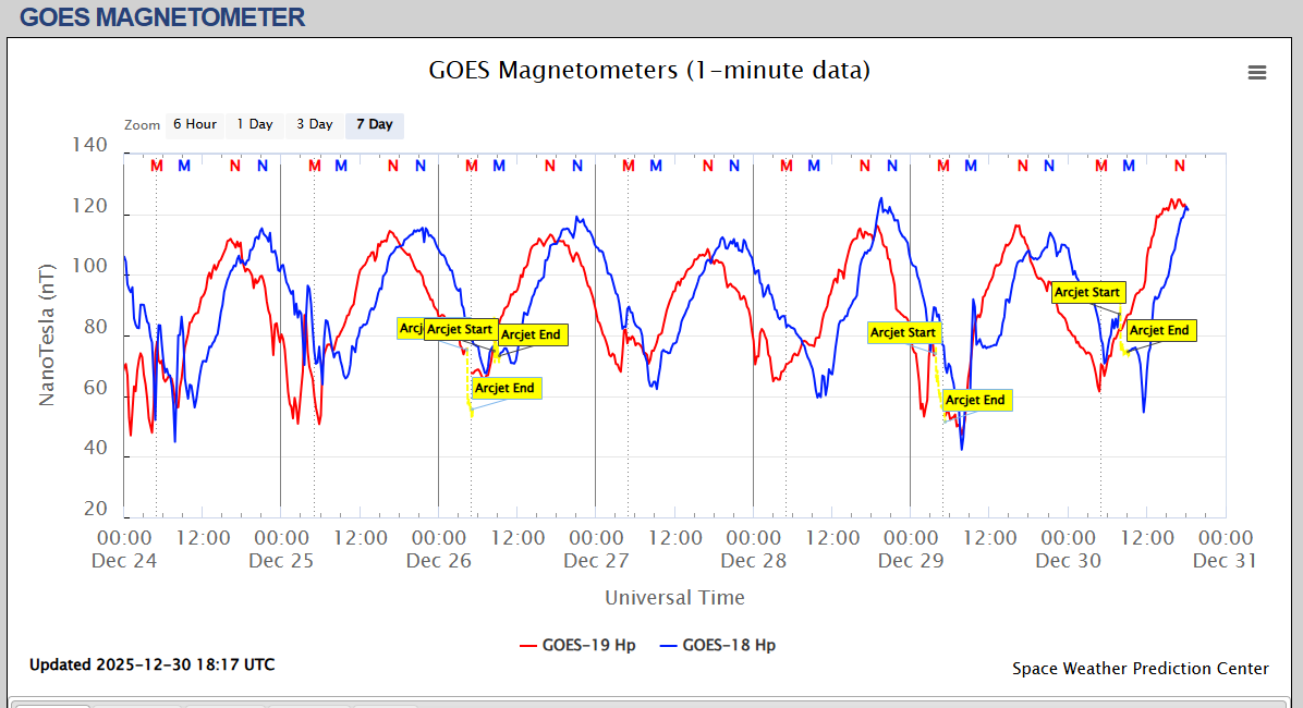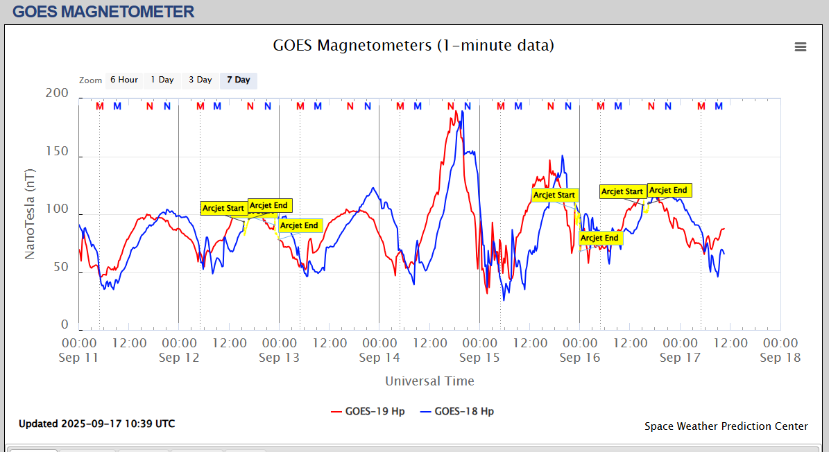Pe această pagină sunt afișate date înregistrate din website-urile care mai publică indicii de evoluţie geomagnetică (geospaţială). Ele ne dau o