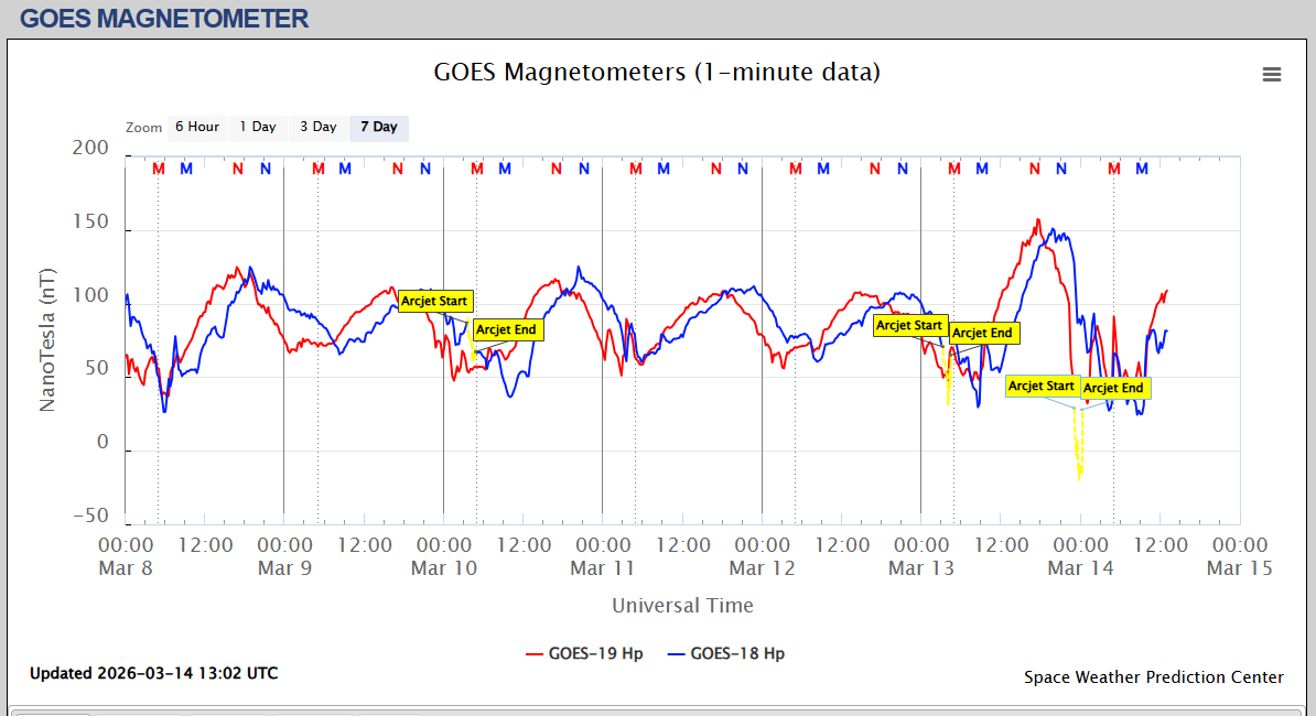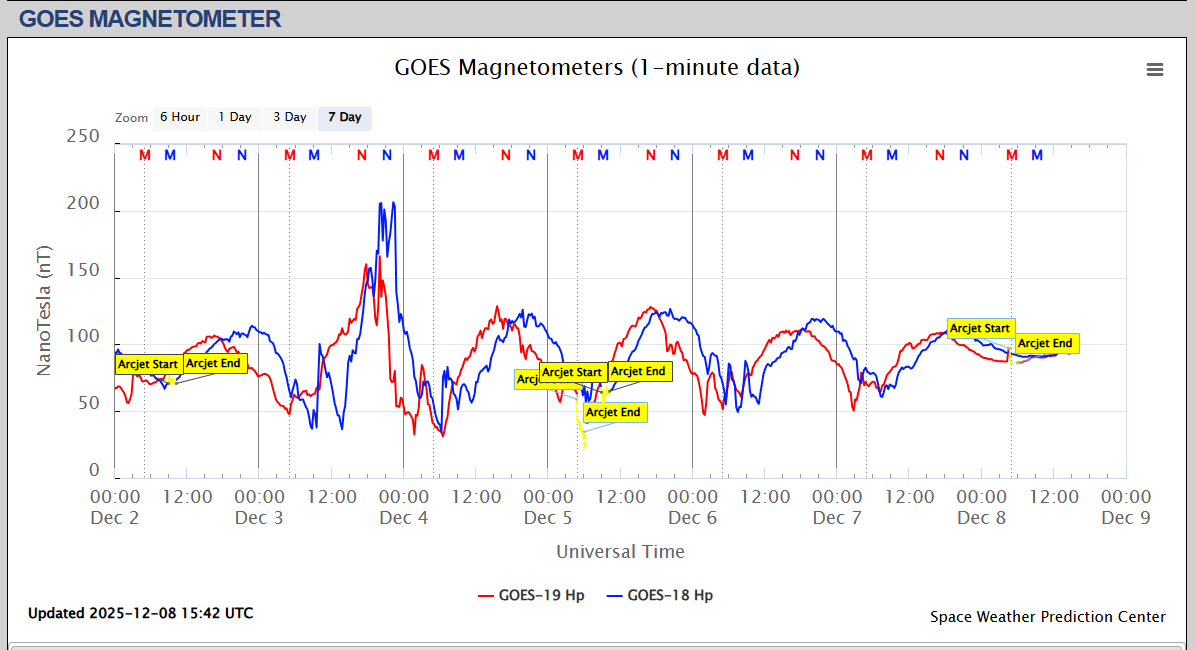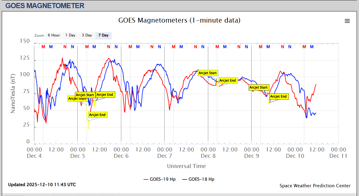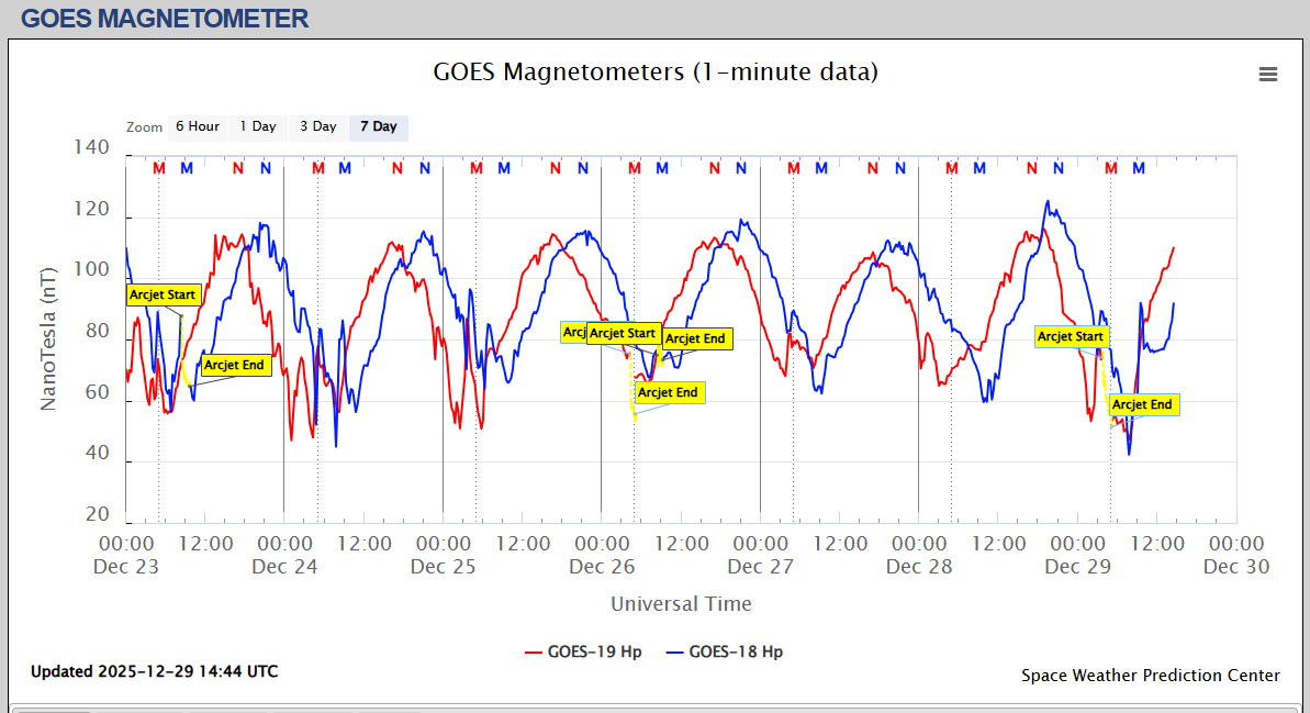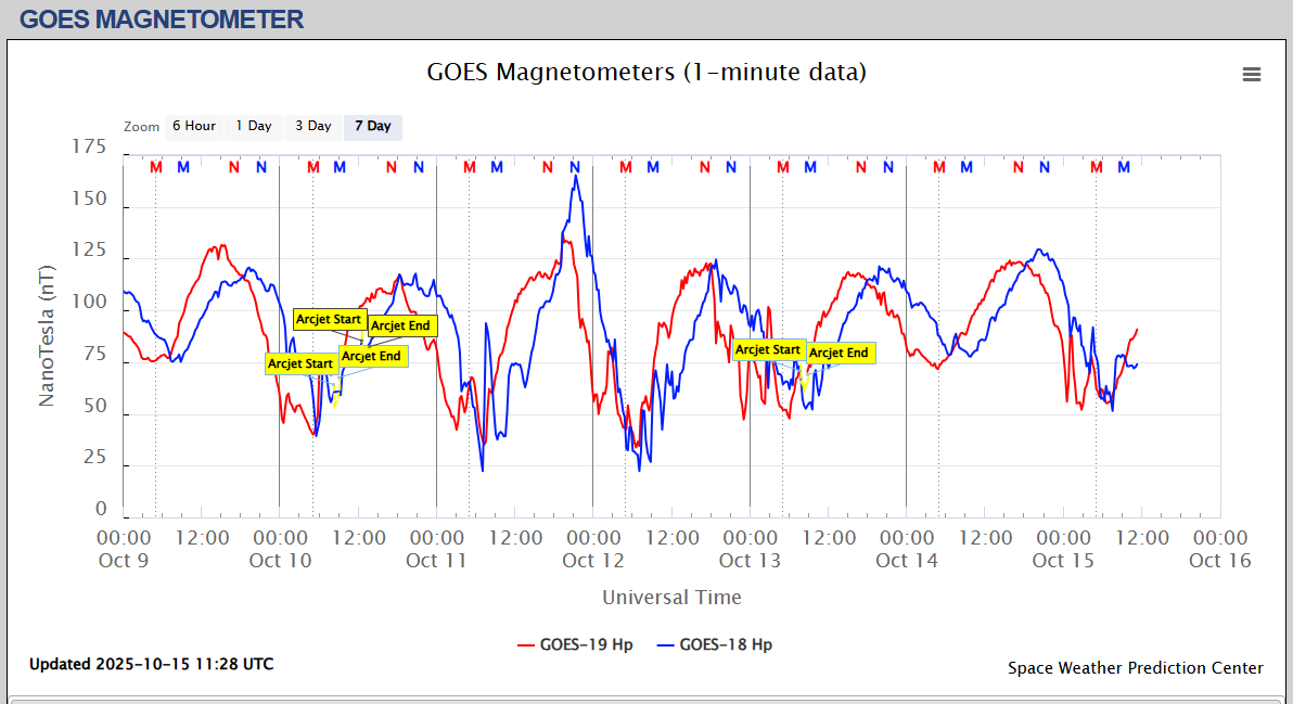 Pe această pagină sunt afișate date înregistrate din website-urile care mai publică indicii de evoluţie geomagnetică (geospaţială). Ele ne dau o