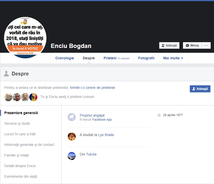 Toți avem dreptul să avem opinii. Un inginer nu are acest drept. El lucrează cu demonstrații. Din păcate foarte mulți oameni nu mai au încredere, unii nici măcar în umbra lor. În această pagină voi pune link-uri către persoanele care ori sunt încete la minte, ori sunt cu epoleţi, ori, pur şi simplu persoane dizagreabile. Eu nu coafez relitatea.Singurele informații vor fi legate de numele persoanei, print scren-ul de pe pagina cu detalii și adresa contului lor de facebook. Alte amănunte nu dau. Aceste persoane se află în lista mea, şi a prietenilor mei, de conturi blocate pe Facebook, din diferite motive.